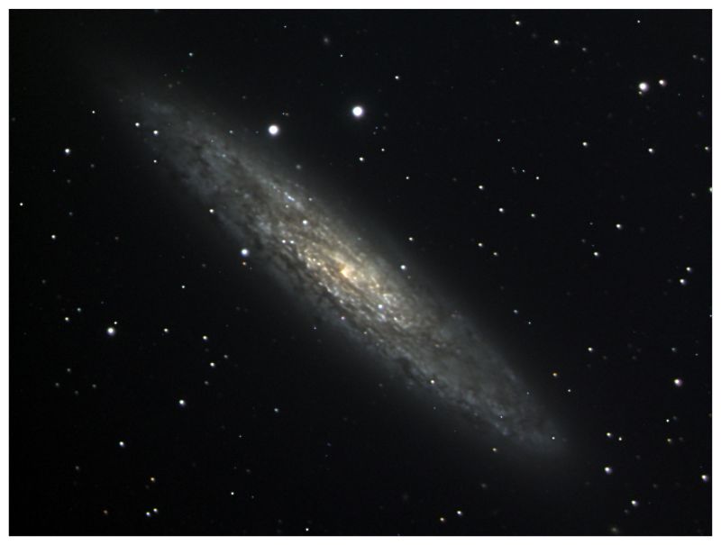 NGC7331 - the Deer Lick GalaxyThe Deer Lick Galaxy (also known as NGC 7331 ) NGC 7331 was discovered by William Herschel in 1784. It is one of the brightest galaxies which is not included in Messier's catalog. It shows a fine spiral structure despite its small inclination from the edge-on position.Until i have the wedge i was only able to grab short photos at poor resolution so the image quality is low. I will come back to this one later. | |