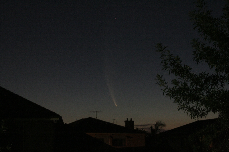 Comet McNaughtComet McNaught also known as the Great Comet of 2007 and given the designation C/2006 P1, is a non-periodic comet discovered on August 7, 2006 by British-Australian astronomer Robert H. McNaught. It was the brightest comet in over 40 years, and was easily visible to the naked eye for observers in the Southern Hemisphere in January and February 2007.This photo was taken out my bedroom window. I didn't have the remote clicker then so shake was a problem as i took the photos. (F14 6 Secs Manual Focus) | |